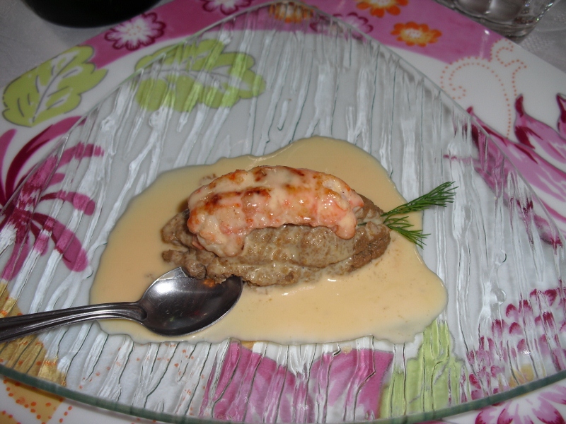 手長海老とマッシュル-ムのキュネル、レモンバ-ムソースをいただきました。