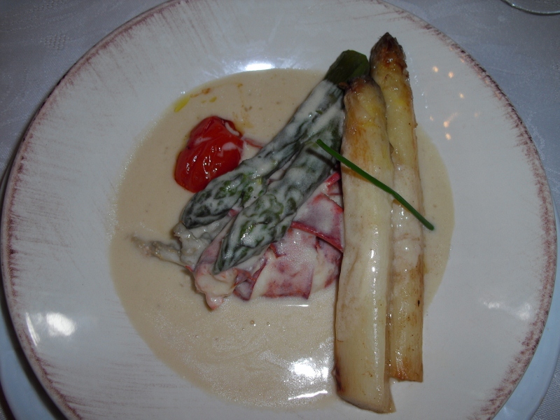 オマ-ル海老とアスパラガスのシャンパ-ニュソース。