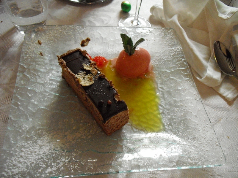 それからお口直しのシャーベット(りんご味)を頂き(一緒に入っているアルコールは、もちろんリンゴのお酒!