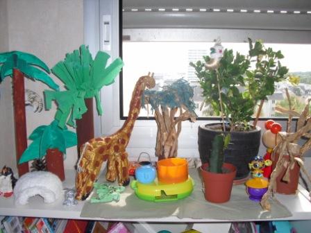 お話を聞いてお絵書きしたり、動物園への遠足の後動物を作って