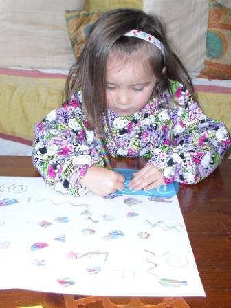 まず、画用紙にいろんな色で模様を書き・・・