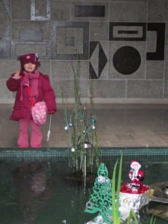 しょうがないので、アパートの池に浮かんでる小さなサンタと記念撮影しました。